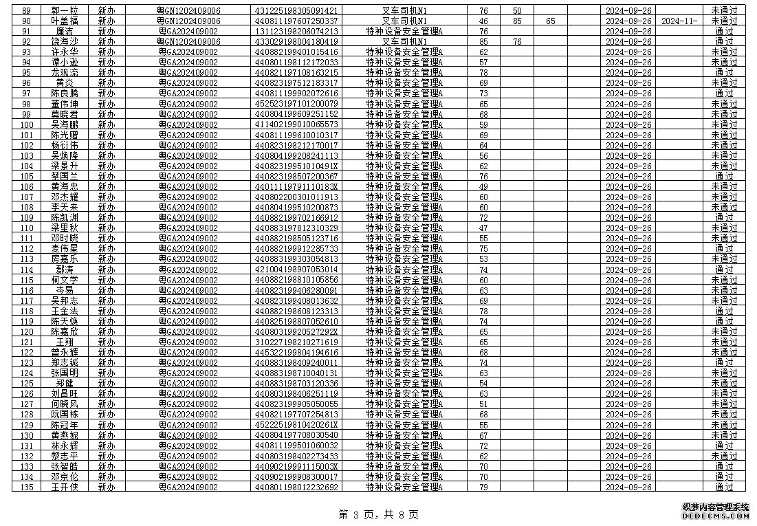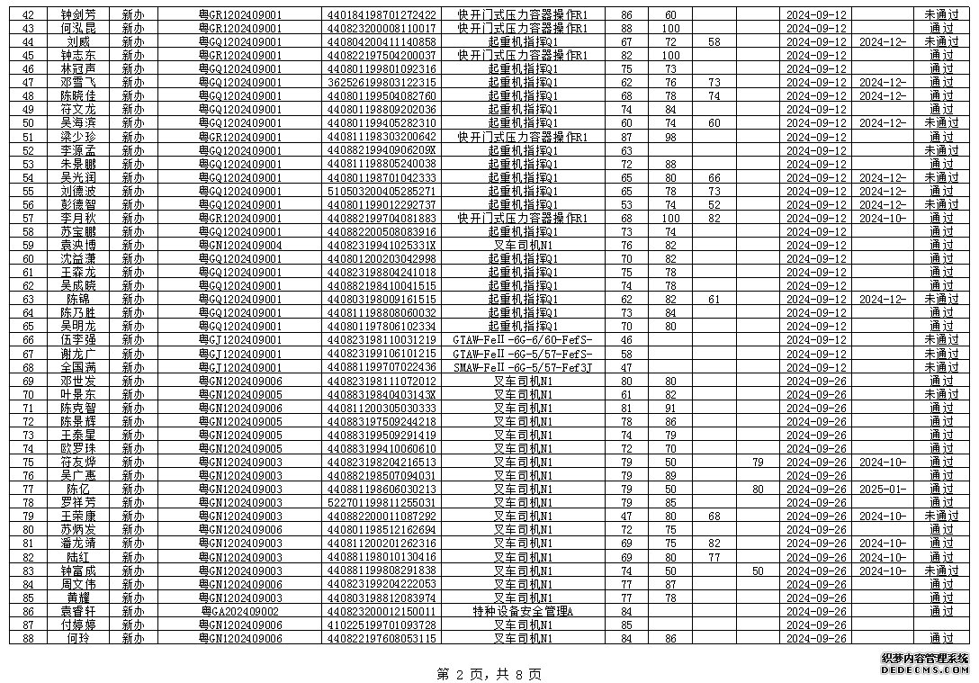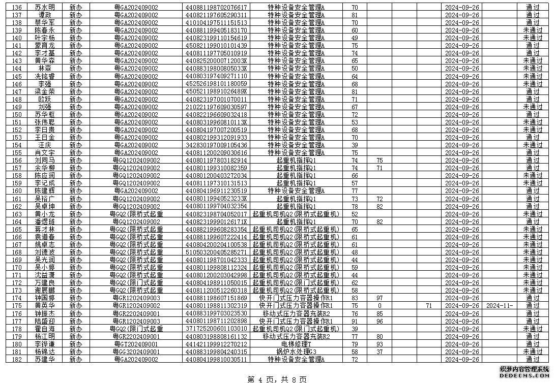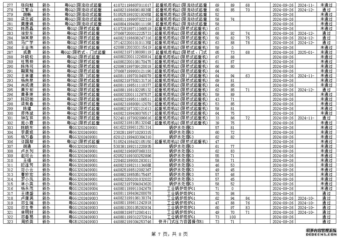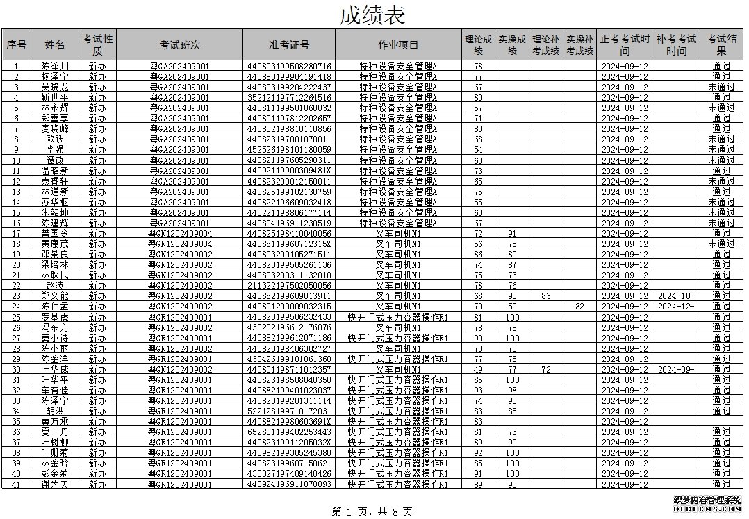 2024年9月特种设备作业人员考试成绩