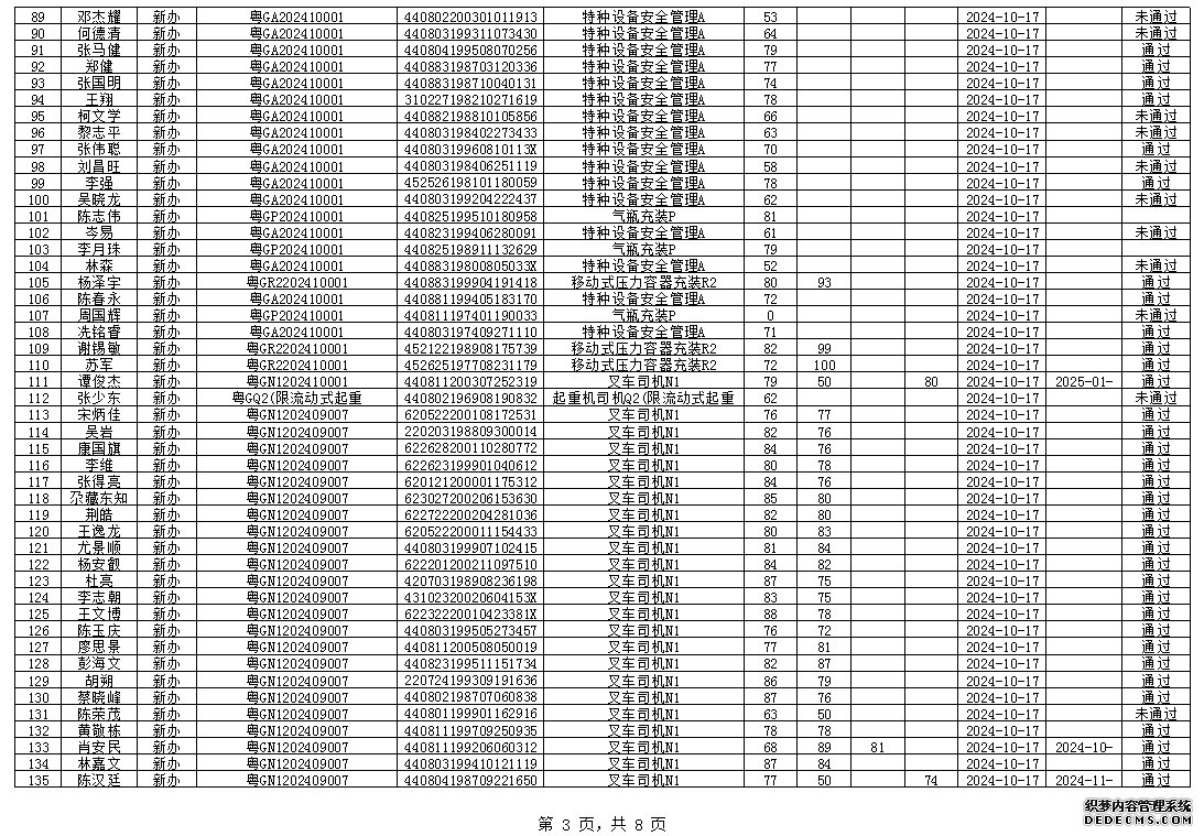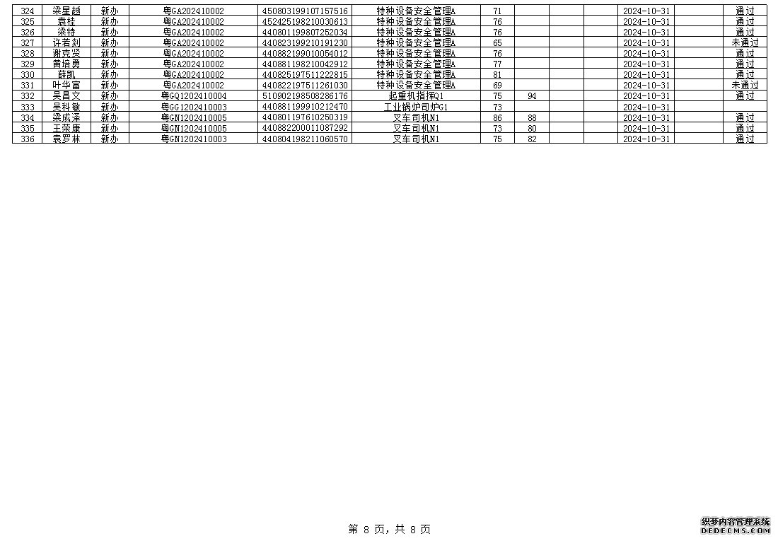 2024年10月特种设备作业人员考试成绩
